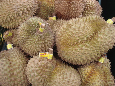 Durian é o nome de uma fruta típica da Tailândia. É fácil encontrá-la nos mercados de Pequim. Ela parece uma jaca (o cheiro, pelo menos, é bem parecido), só que é mais espinhuda. Encontrei um pudim feito de durian e, óbvio, comprei um pote. Experimentei e… achei um horror! O Alex Tseng, companheiro de cobertura da ESPN-Brasil, provou também e se saiu com a seguinte definição: “Tem gosto de lixo”. Nada a acrescentar!