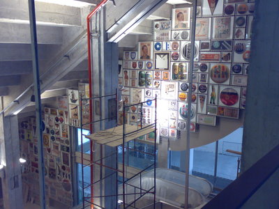 Fiz a visita de hoje ao lado do curador e agora diretor executivo do museu, o jornalista Leonel Kaz, torcedor do Ameriquinha. O Leonel está com cara de quem tem dormido pouco. Mas o Museu do Futebol está ficando fabuloso. As duas próximas fotos mostram o saguão de entrada de dois ângulos diferentes. As paredes estão sendo forradas com reproduções fotográficas de peças de colecionadores.