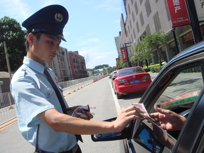Pequim já tem várias garagens subterrâneas. A cada minuto, dez novos carros são registrados na China. Nas regiões mais antigas da Cidade, porém, estacionar ainda é uma dificuldade. Os motoristas acabam parando em qualquer lugarzinho que encontram. O curioso é que há sempre nesses lugares um guardinha uniformizado para cobrar a conta. No centro, o estacionamento custa 5 yuans (R$ 1,25), enquanto que nos bairros ele sai por 2 yuans (R$0,50). Todos os guardinhas andam com maços de dinheiro e um bloquinho para passar o recibo. Melhor e mais honesto que os nossos infernais flanelinhas.